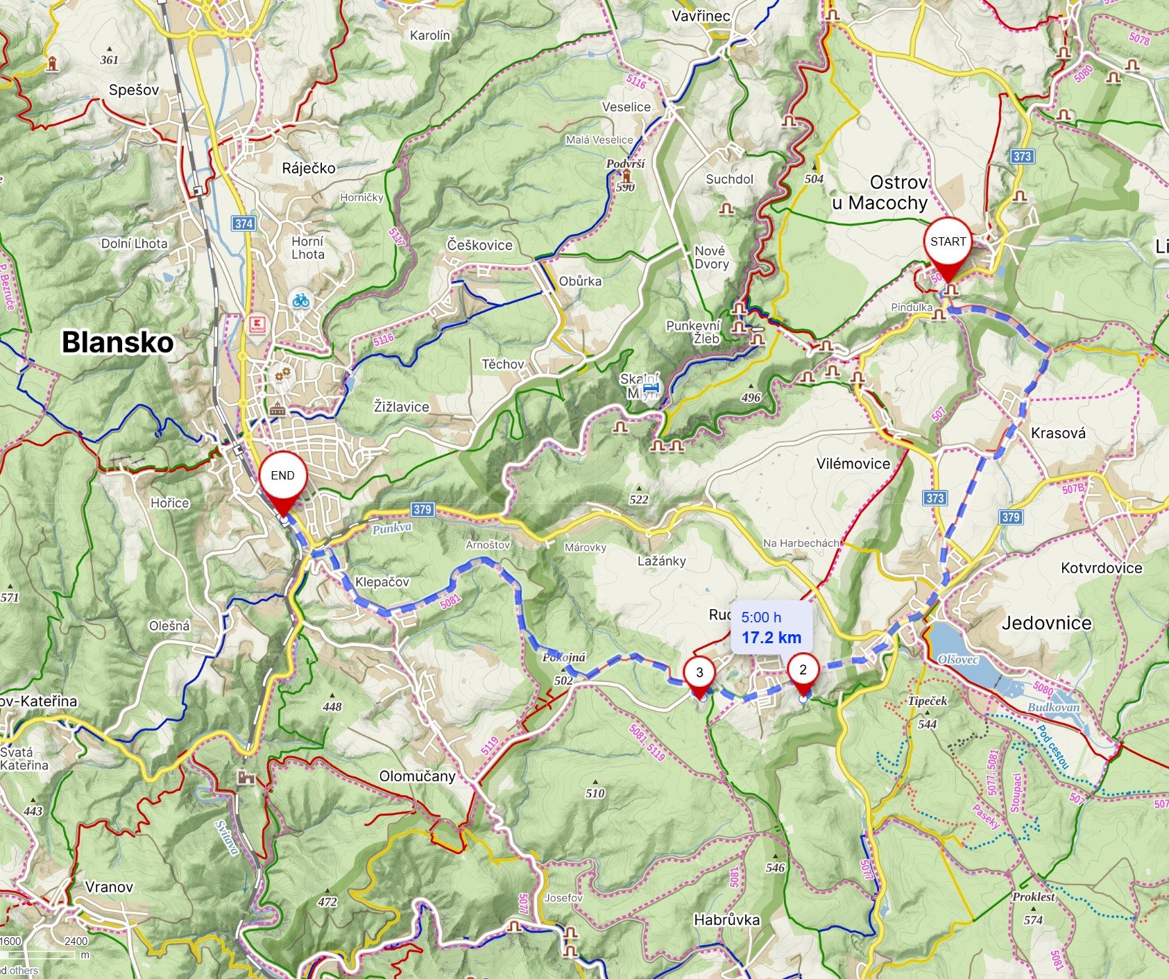 Hike ends in Blansko, train station at aproxymetly 16:00