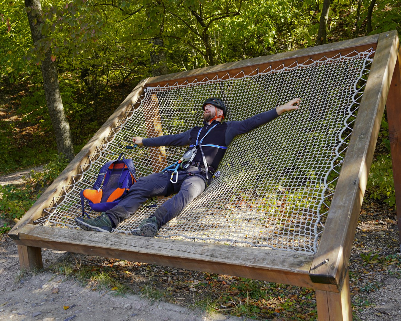 In the heart of Megyer-Hegyi Tengerszem, Hungary, a group of outdoor enthusiasts geared up for a day of Via Ferrata fun, part of the Operation Hook 2 project.