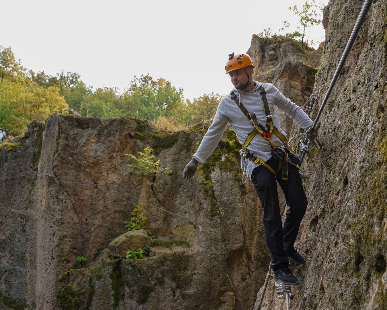 Our Ferrata instructor, Attila, played a crucial role in ensuring everyone’s safety. With a focus on equipping participants with essential skills and emergency techniques, he made this adventure not just thrilling but also educational, making everybody feel safe and confident in high altitudes. As the day unfolded, we tackled various Ferrata routes of all shapes and sizes. We were like a bunch of friends on a quest, cheering each other on and sharing that amazing feeling of reaching the top. And when the climbing got tough, a few shaky legs and tired arms just added to the adventure.