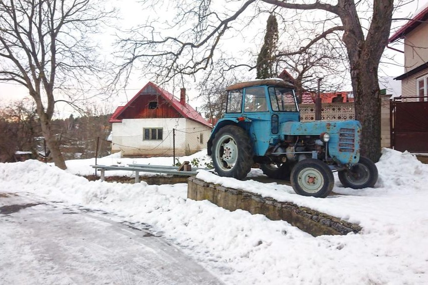 Photography enthusiasts in the snowy village of Látky, capturing its rural charm and community spirit through lenses.