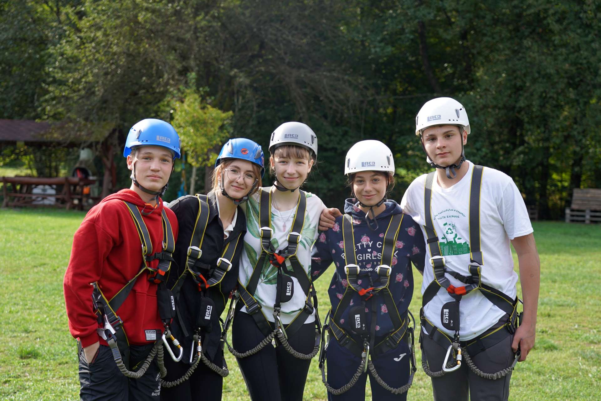 In the heart of Megyer-Hegyi Tengerszem, Hungary, a group of youth geared up for a day of Via Ferrata fun, part of the Operation Hook 2 project.