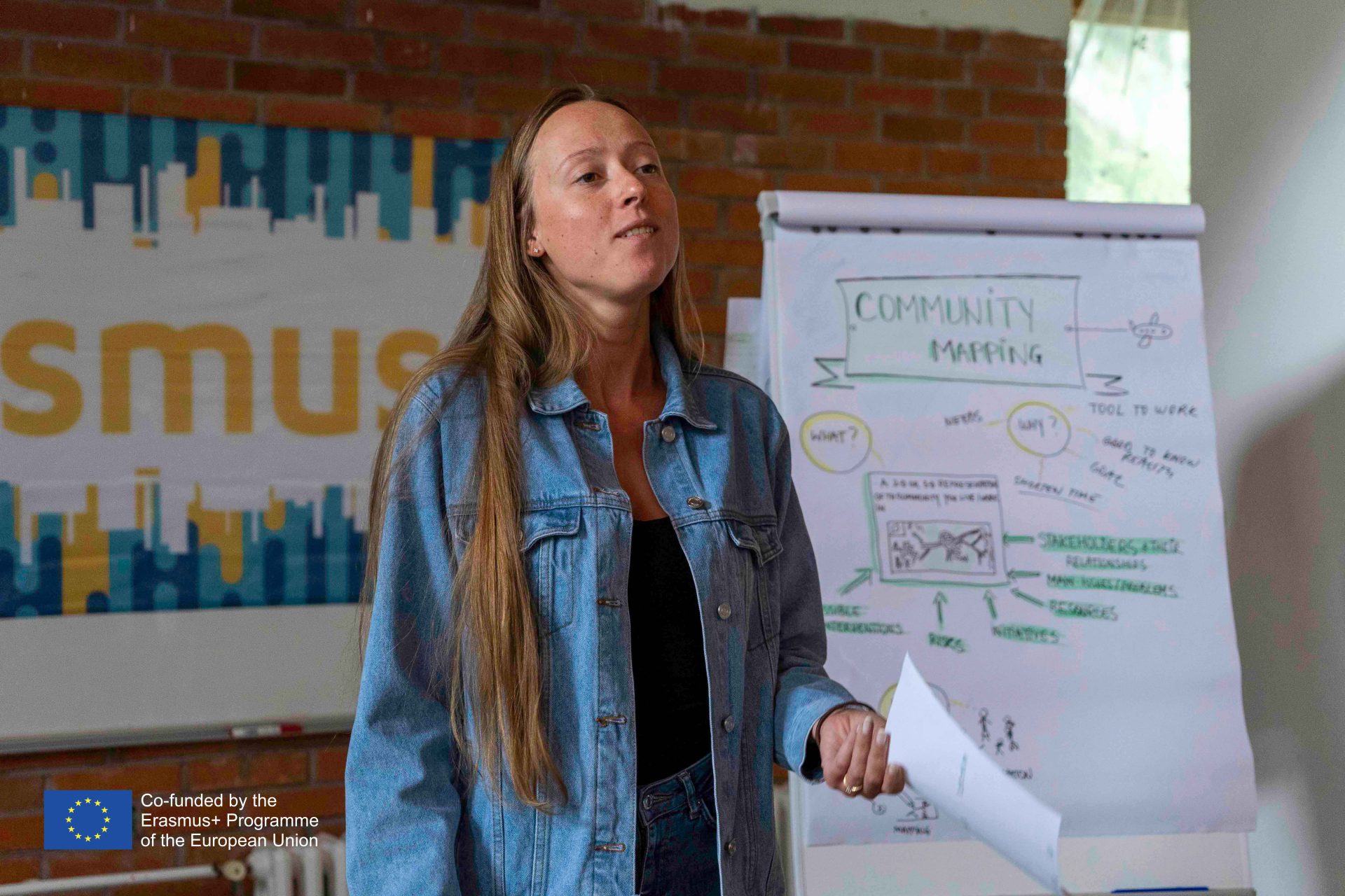 Following that the focus was on understanding the key concepts of participation, interculturalism, diversity, stereotype, prejudice, discrimination and collaboration, on understanding the process of non-formal education and also on experimenting some of the most attractive methods in non-formal education. We learned about models like Iceberg of Culture, Cycle of Stereotype-Prejudice-Discrimination and Hart’s Ladder of Participation and then explored different methods, namely Community Mapping, Art based methods like Living Library , Eco-Batucada or Forum Theatre.