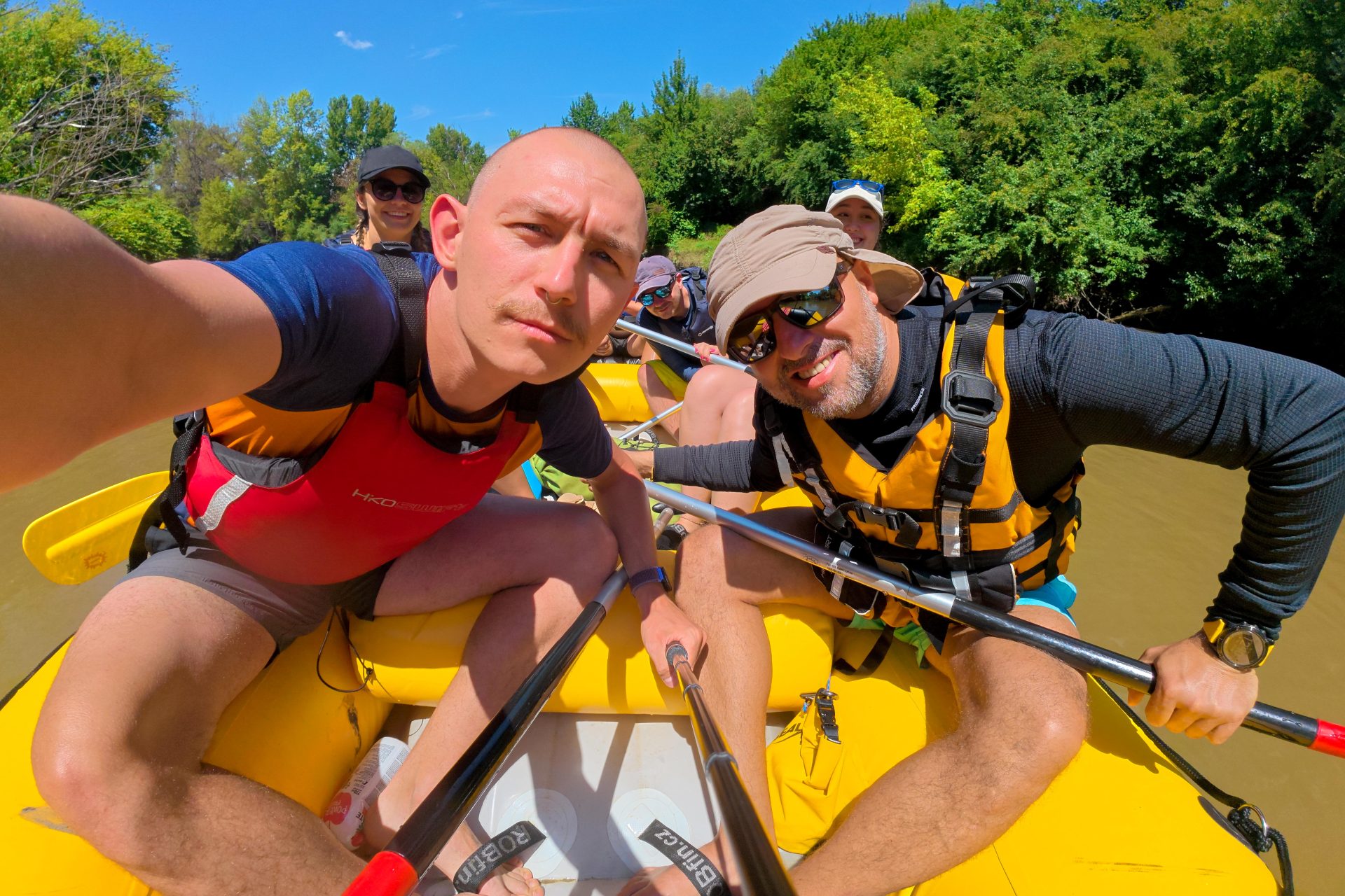 On the first day, we started with training, during which we learned all the essentials – how to hold the paddle properly, how to work together as a team on the raft, what to do in case of a capsize, and how to handle the river safely. Under the guidance of experienced instructors, we learned the basics of rafting and immediately tried them out in practice. Our first rafting trip followed, where we put our new skills to the test – all safely and, of course, with a good dose of fun!