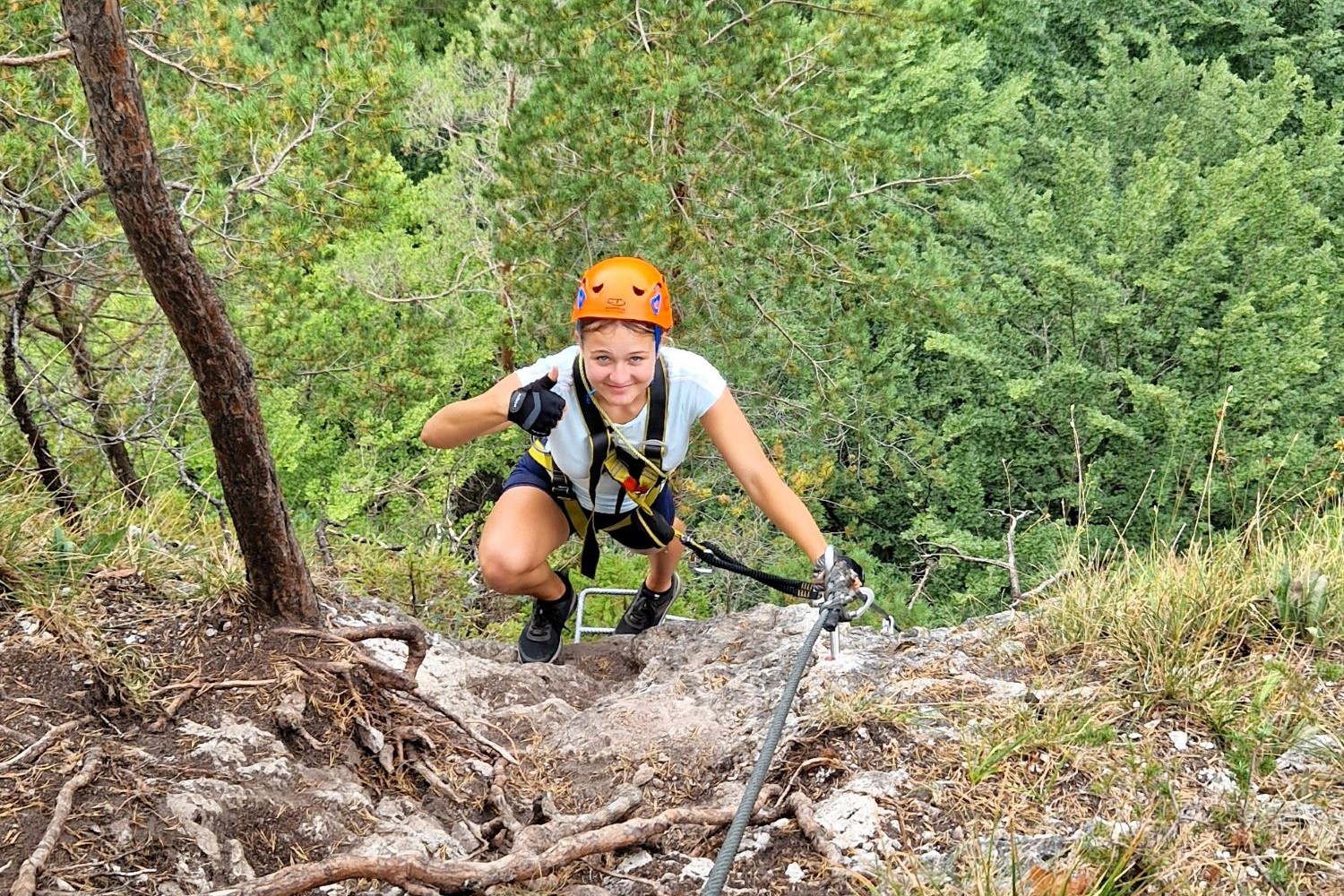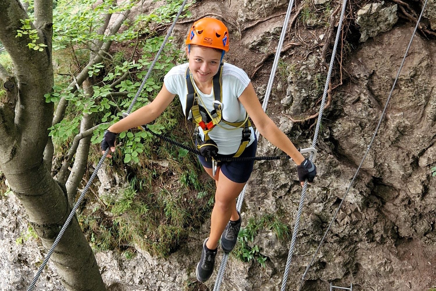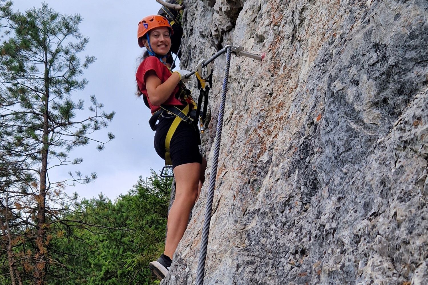 The via ferrata adventure took place in the beautiful natural environment of Veľká Fatra. First we practiced some belaying techniques and knots, for different situations on the via ferrata, but then we also had an amazing and fascinating via ferrata with different difficulties. The guide of our organization Klub 86, Gábor emphasized the need for proper use of harnesses, helmets and other safety equipment so that everyone is well prepared for the ascent. During the activity, the guide shared important tips with the participants on what to do in case of an accident or emergency. They covered basic Via Ferrata safety rules, communication signals and basic first aid techniques, giving adventurers important knowledge that can help save lives in difficult situations.