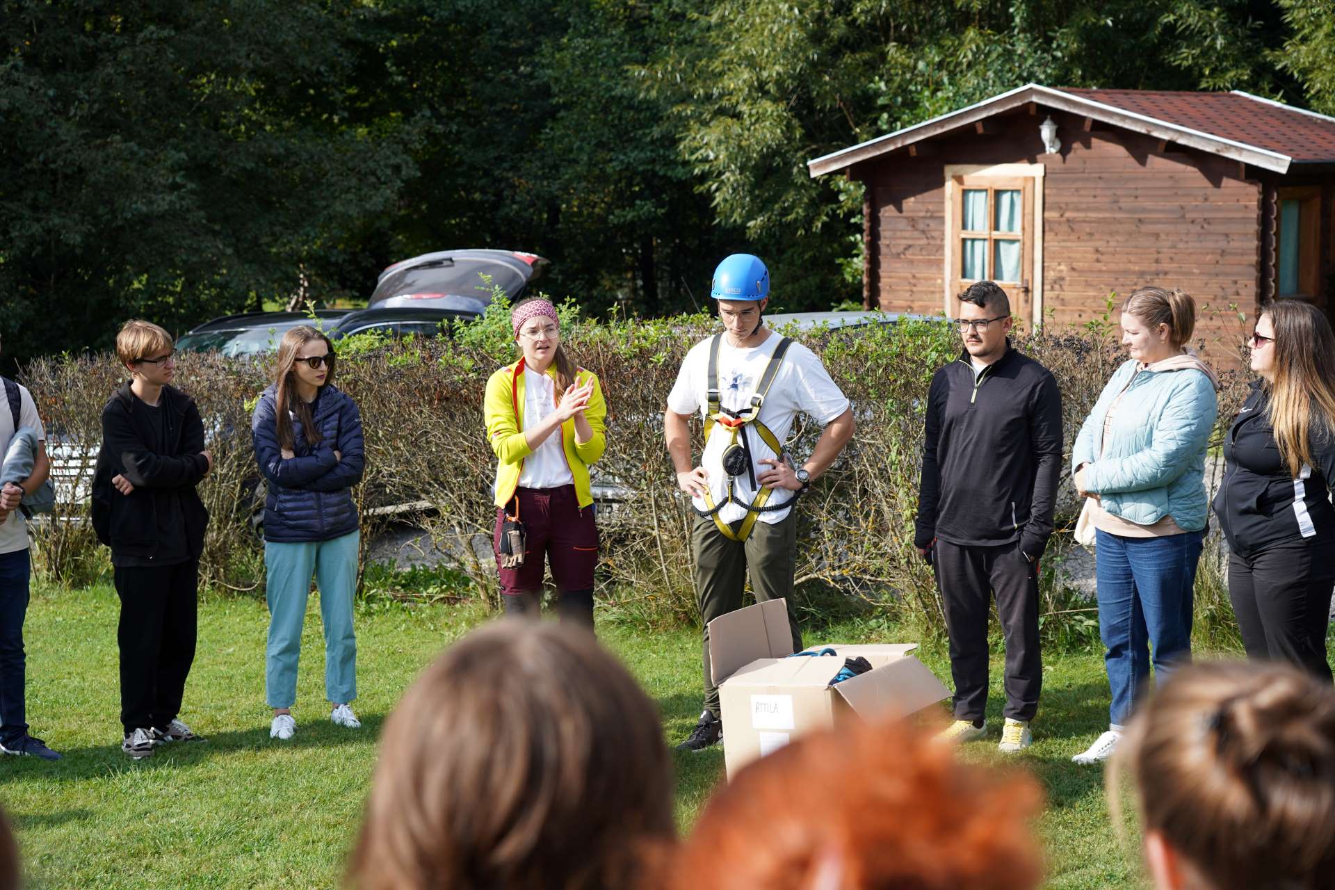 The event began with a detailed introduction to the equipment. Andreea and Bodor demonstrated essential knots, including the double fisherman’s and prusik, ensuring a solid foundation for safe climbing. The participants’ skill levels varied, so to ensure everyone’s safety and comfort, they divided the group by skill level. The more confident climbers started first, while others practiced knot-tying at the base.