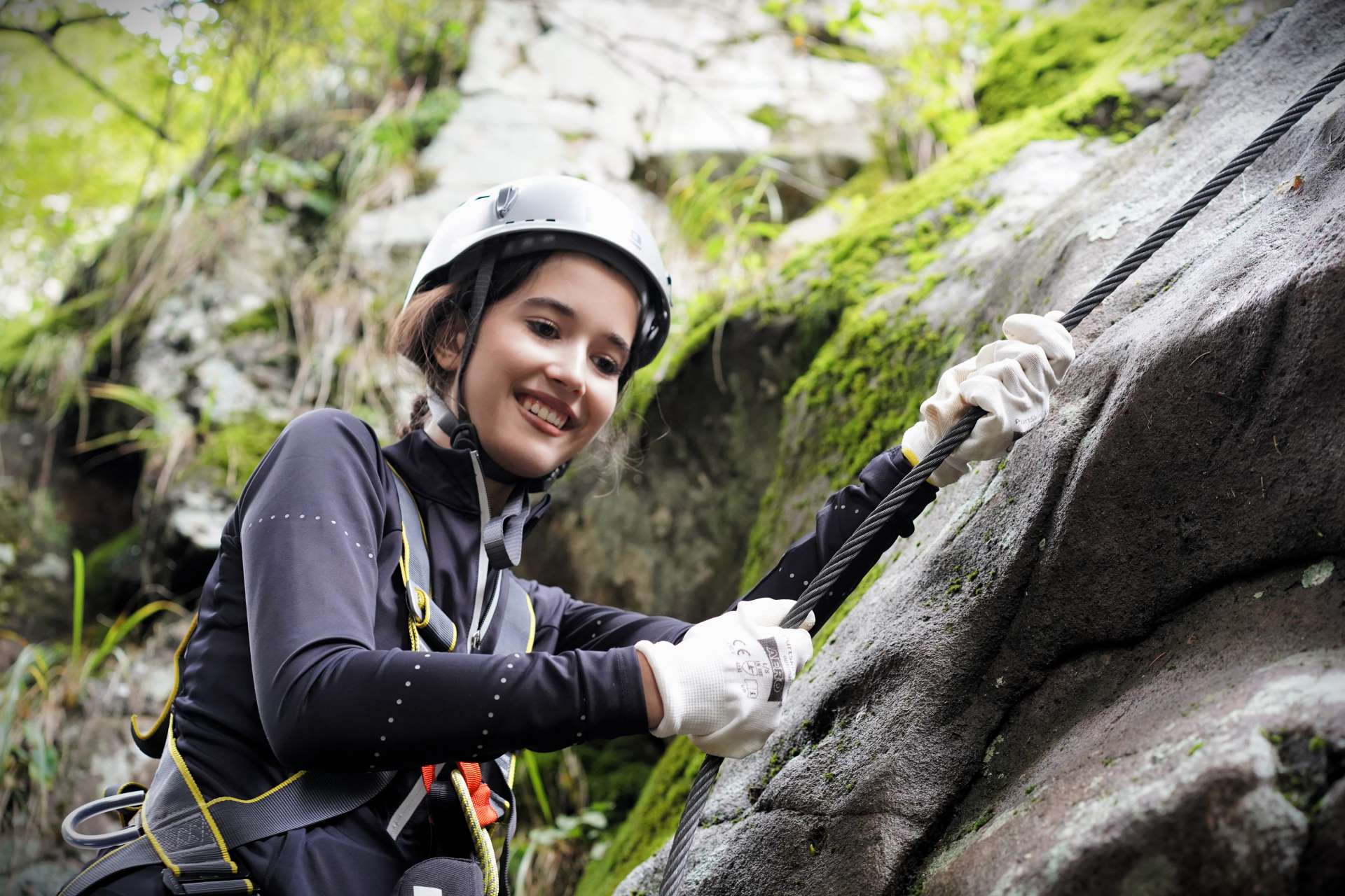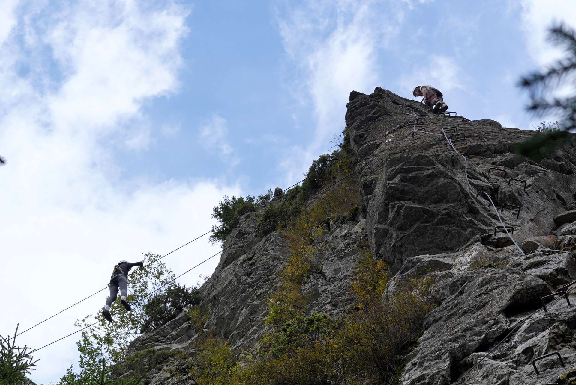 To start, Andreea and Pavel introduced the equipment and covered safety protocols. They demonstrated essential knots, like the double fisherman’s and prusik, to ensure each participant felt secure before the climb. Then, to meet everyone’s skill levels, they split the group. More confident participants started the route first, while others practiced knot-tying at the base with guidance.